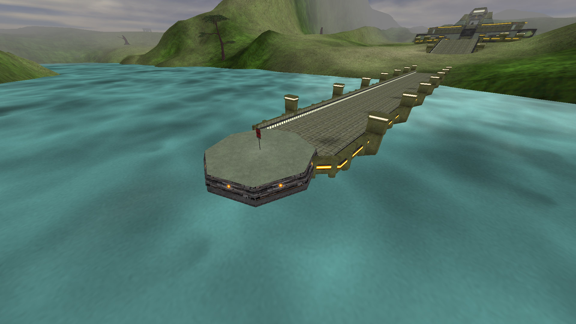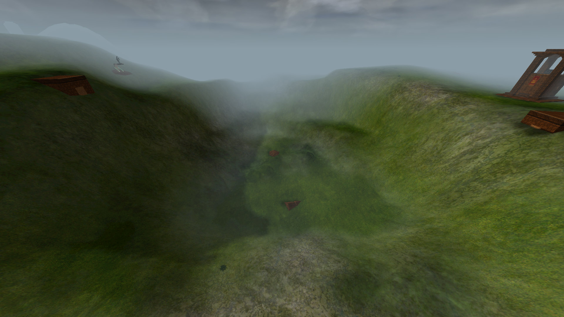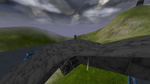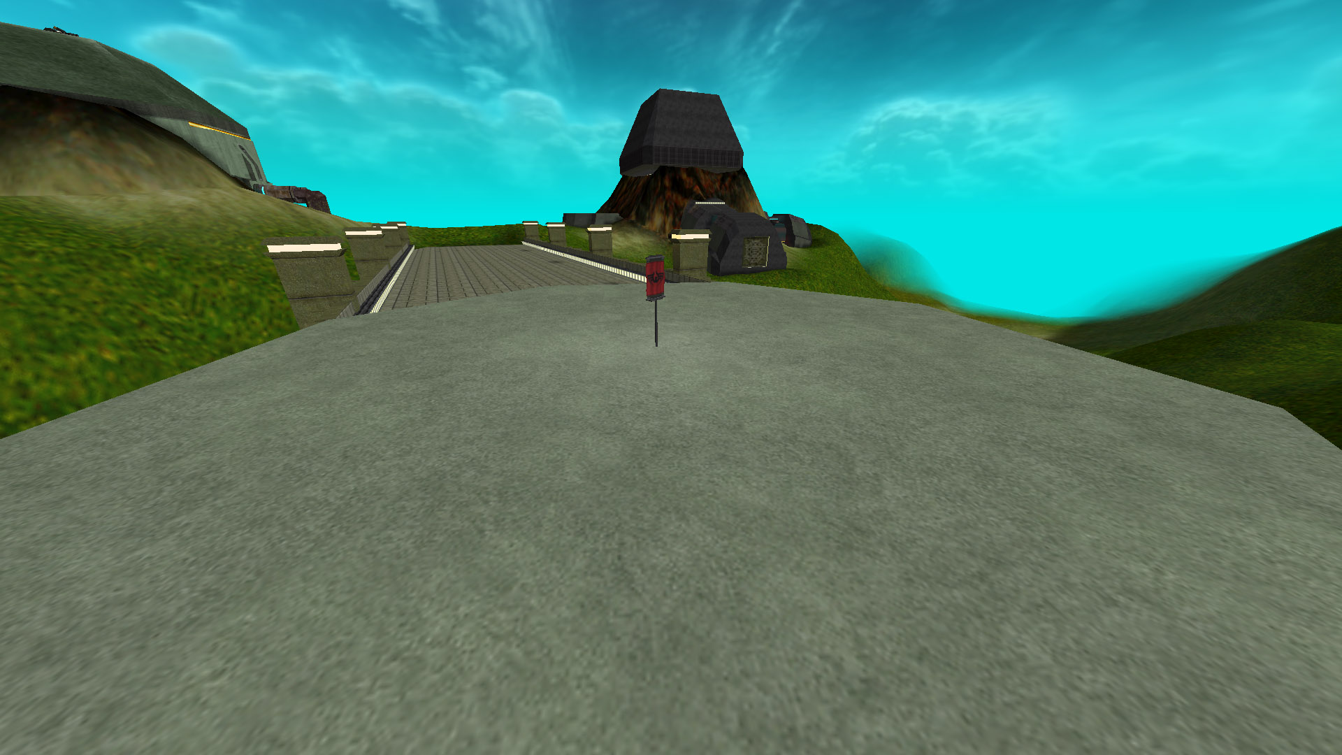 Two bases, each with one flag, separated by a large chasm. A lengthy bridge joins the two. A straight line may be the quickest route, but not necessarily the safest in this mission...