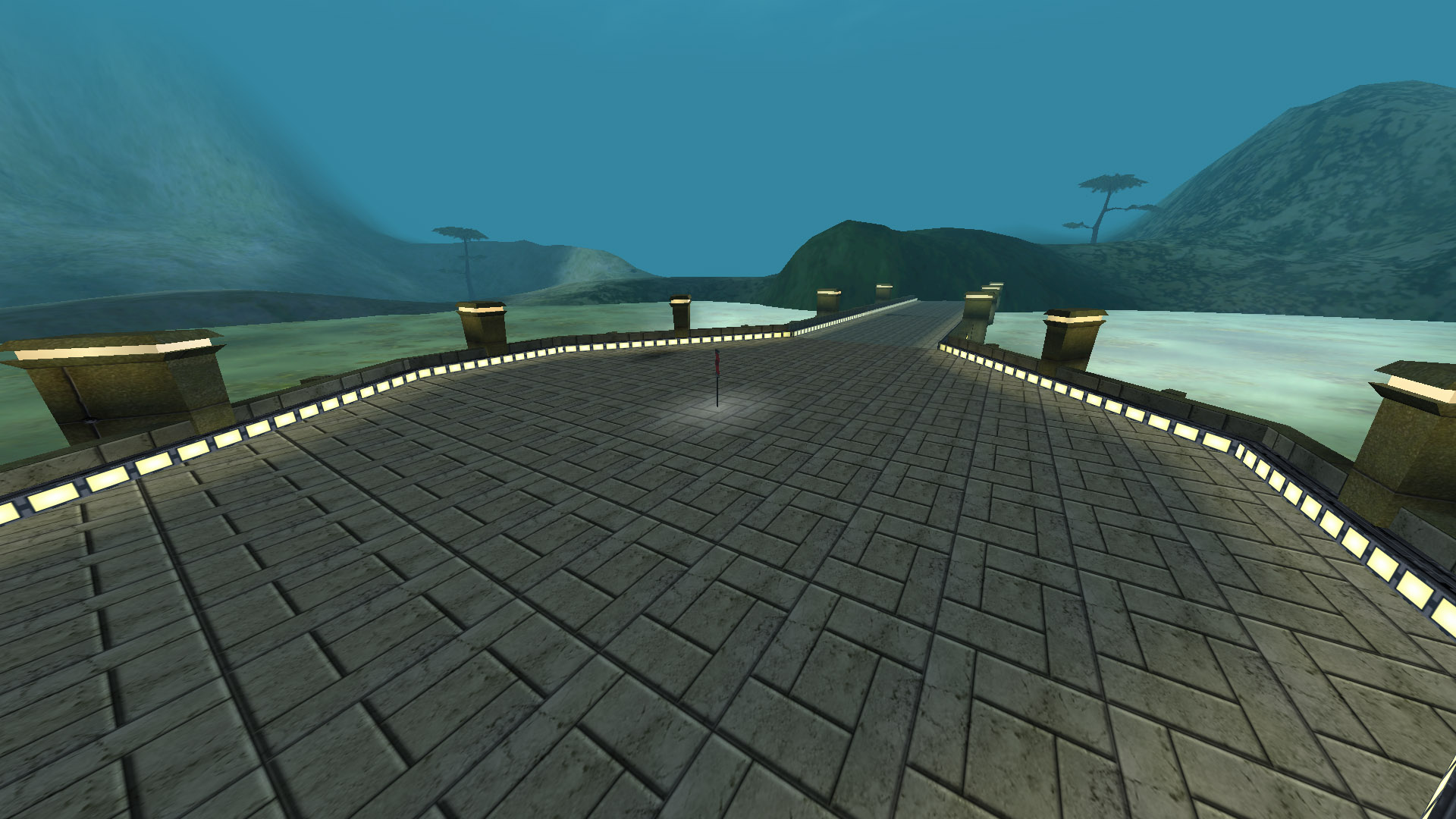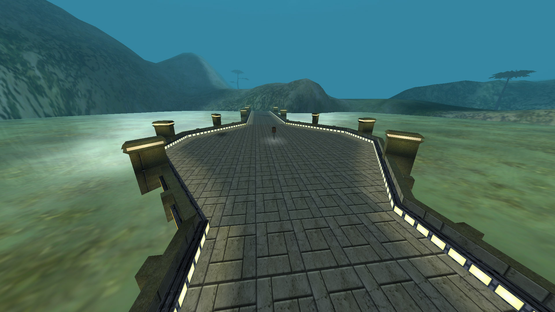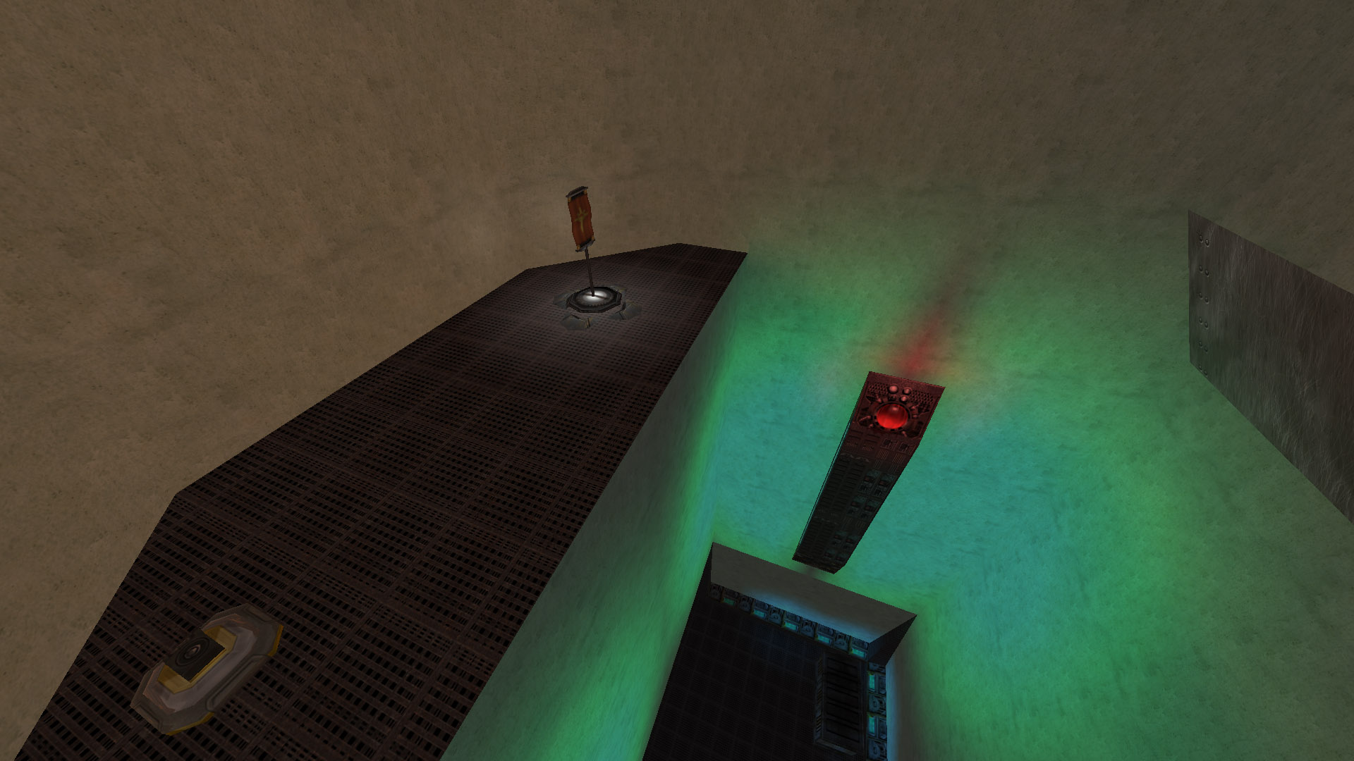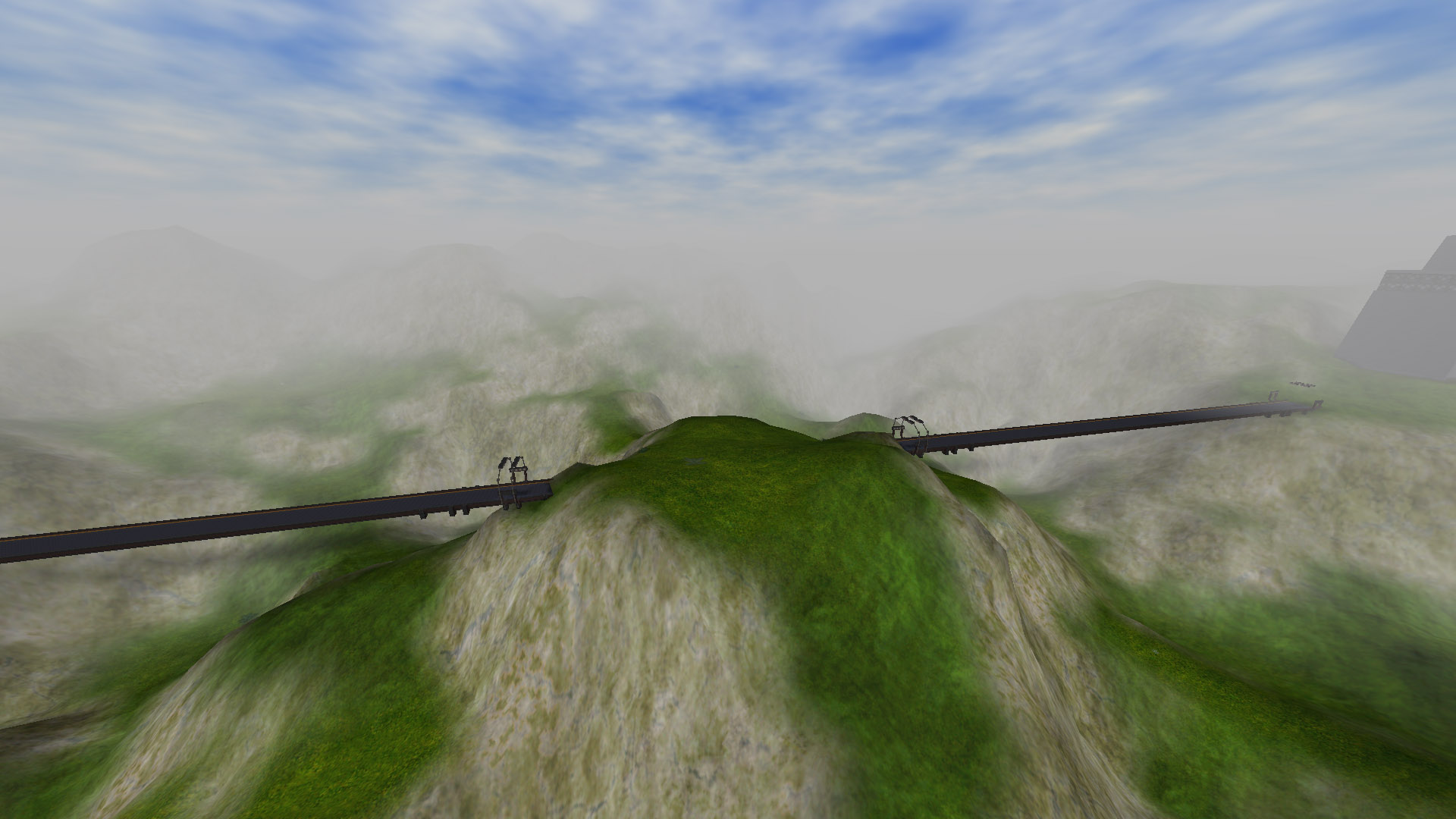 Two bases, each with one flag, separated by a large chasm. A lengthy bridge joins the two. A straight line may be the quickest route, but not necessarily the safest in this mission...