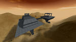 The BloodEagle and Diamond Sword battle each other at close range with their massive flying bases.
